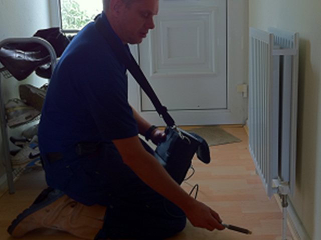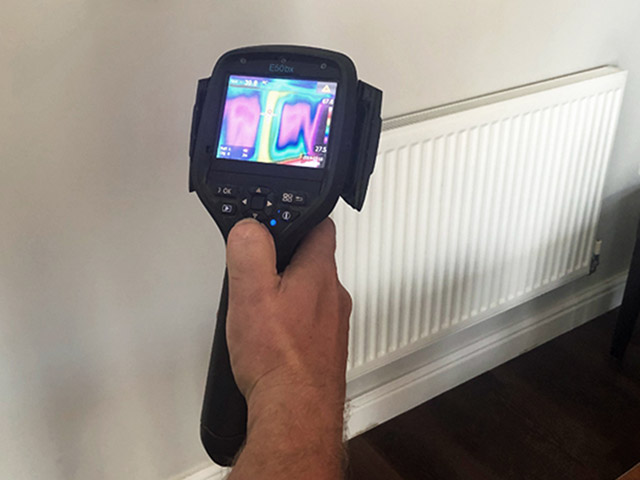 Moisture metres check the levels of moisture on surfaces. Our engineer will take several readings around your home where central heating pipes run around your property and around the boiler itself to check for areas with higher levels of moisture to pinpoint the source of the water leak. Higher levels of moisture present indicate there may be a central heating leak nearby. Sometimes as some materials are harder to test then others we may need to drill a small hole to take more accurate readings inside the surface. Although this approach isn't completely non-invasive, the damage caused is very minimal with this method.